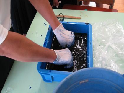 文化祭1日目に、3年生は創作活動を行いました。3年生は絞り染めをしました。