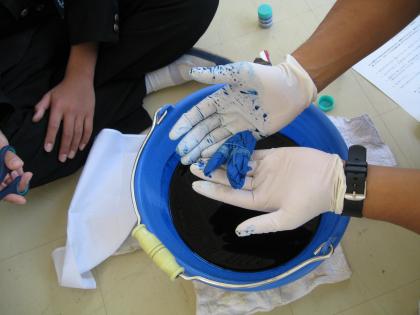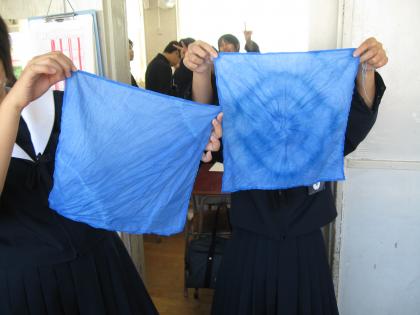 絞り染めの様子。