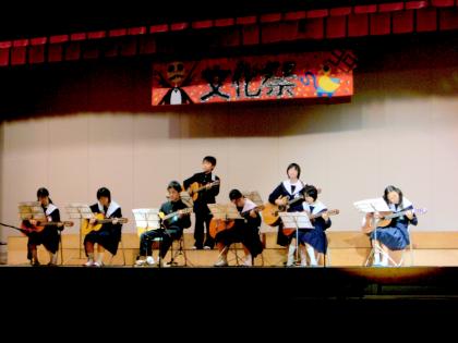 上:ギター部発表の様子。 下:幕間発表の様子。