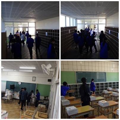 明日はいよいよ入学式始業式です。今日は、2年生3年生の有志の皆さんが明日の準備をしてくれました。皆、笑顔いっぱい、元気いっぱいに作業に取り組んでくれました。明日は素敵な入学式始業式になりそうです。作業をしてくれた皆さん、お疲れさまでした。