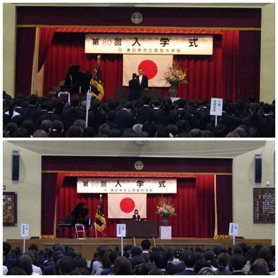 爽やかな青空の下、第80回入学式が行われました。校長先生の式辞の後、担任発表、新入生誓いの言葉、生徒会長からの歓迎の言葉がありました。緊張感の中にも笑顔いっぱい思い出いっぱいの入学式となりました。校長先生のお話にありましたが、あいさつ、返事を大切に、素敵な中学校生活にしてくださいね。