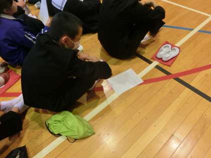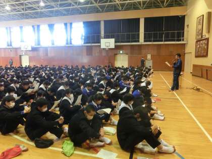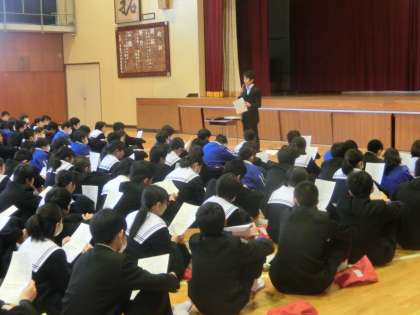 修学旅行の体験学習に向けての集会の様子です。