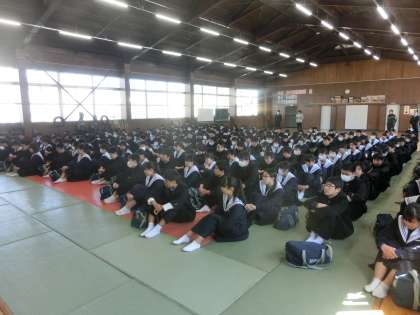 各学校での発表を確認した後に、合格通知書を受け取りに合格者は武道場に集まりました。