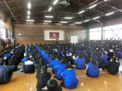 3月23日(木)の5時間目に1年生は学年集会を行いました。