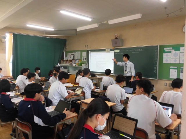 あいさつ運動を終えて、本日、校内授業研究会の2回目を実施いたしました。「自ら課題を見つけ、その解決に向けて主体的に働きかけ、学びを深めることができる生徒の育成」を目指して、ここまでに取り組んできた成果を、来校していただいた方達に見ていただくことができました。そこでいただきましたご意見を今後の改善に活かして、生徒達がより一層主体的に活動していくことができる授業を研究し続けていきたいと思います。今後も何卒よろしくお願いいたします。