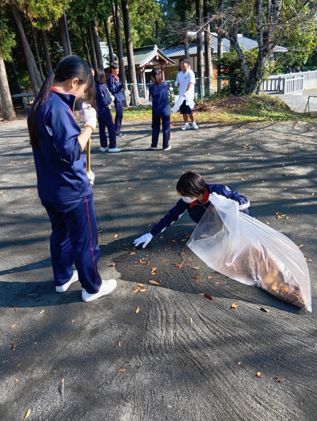 今日は「立冬」ですが、天気予報によると、気温が20度前後になる少し暖かい冬の入りのようです。しかし、それが屋外で活動する3年生にはちょうどよかったと思います。午前中に、学校から出発した3年生が校区内の各地にて「地域クリーン作戦」を行いました。日頃からお世話になっている地域の方々のために、今年度も一生懸命に作業をする姿が見られました。また、準備や片付けなど、活動に協力していただきました地域の皆様に感謝申し上げます。ありがとうございました。
