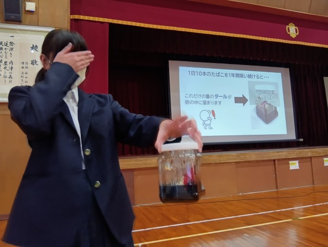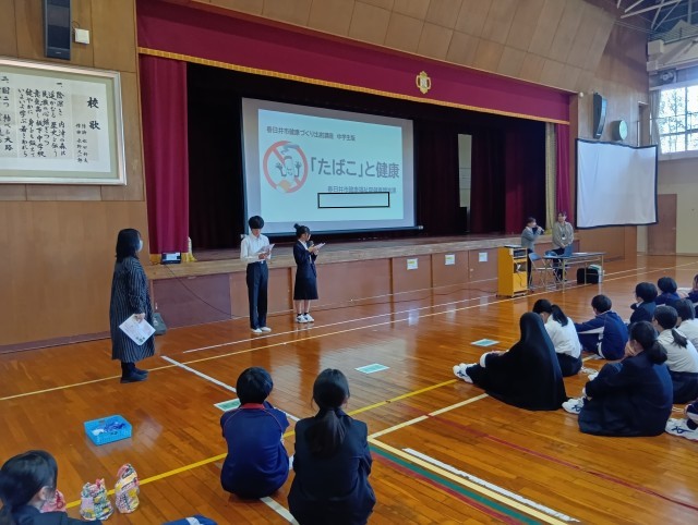 今年度のテーマは「たばこ」です。講師として、春日井市健康増進課の方をお招きし、ご講演いただきました。