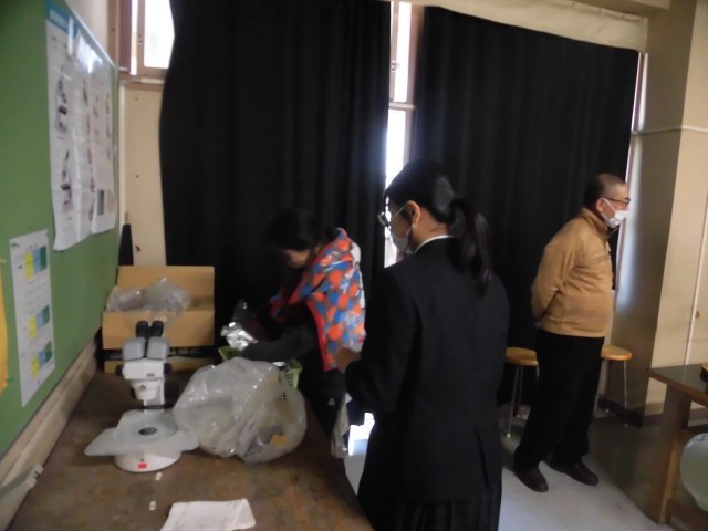今日は、日が高くなっても廊下の気温が変わりません。廊下を歩いていても、冷たさが足元を包み込むように迫ってきます。来週には少し寒さが緩む予報が出ているので、そのときを待ち遠しく思っています。本日3時間目の授業の様子です。理科の授業でプラネタリウムを作り、その投影テストをしました。星座の形にそって穴をあけたアルミホイルを段ボール箱に貼付け、箱の中からライトを照らします。すると、4段目の写真のように、天井にきれいな星空が映りました。穴あけ作業を根気強く取り組んできた成果が鮮やかに表れて、生徒達も大喜びでした。次の授業では他の星座も投影する予定となっています。こちらもぜひ楽しみにしていますね。