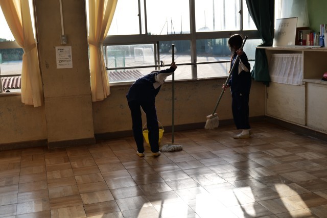 どの学級の生徒も丁寧に教室の清掃を行い、ワックスをかけていました。楽しそうに談笑しながら作業する様子も素敵でした。