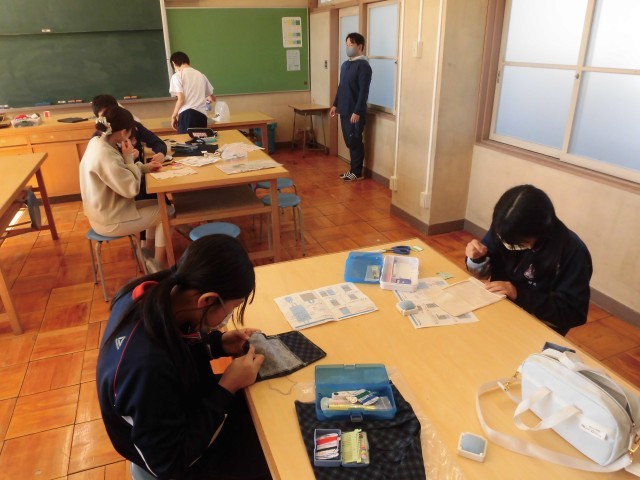本日は「節分」です。これが来ると、いよいよ立春が近づいた気がします。寒さはまだ続きますが、春への期待を込めて過ごしたいと思います。5時間目の授業の様子です。家庭科で裁縫に取り組んでいます。被服室の各所で、個別にアドバイスを受けながら、裁縫だけでなく、ミシンやアイロンなど、様々な作業に取り組む姿が見られました。