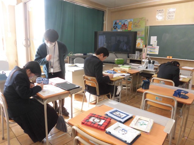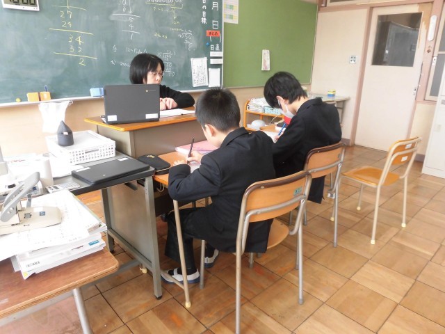 今日の廊下は先日よりも寒さを感じない気がします。この流れで緩やかに春に向かってほしいと思います。本日4時間目の授業の様子です。国語の学習に取り組んでいます。2つの教室に分かれて、それぞれの課題に取り組んでいました。読解のワークを解いたり、漢字を順番に書き進めたりする学習を、静かに集中して行う姿が見られました。