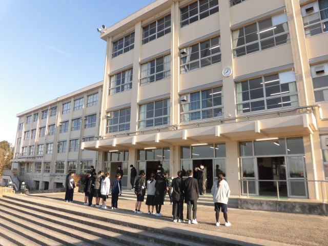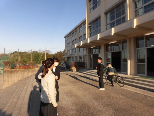 今日は朝から眩しい日差しが降り注いでいます。そしてその降り注ぐ朝日に負けないぐらい、あいさつの声が昇降口前にあふれていました。本日のあいさつ運動の様子です。今朝は、生徒会実施の「あいさつ運動」も行われていたため、生徒会のメンバーが生活委員に加わって、いつもより多い人数であいさつを行っていました。昇降口に入ろうとする生徒を待って一斉に声をかける姿や、登校した友達に声をかける姿、そして先生と語らう姿など、思わず寒さを忘れるほどにぎやかな朝でした。気づけば本年度のあいさつ運動の残り実施回数もあとわずかです。機会は限られていますが、その一つ一つを大切にしていきたいと思います。