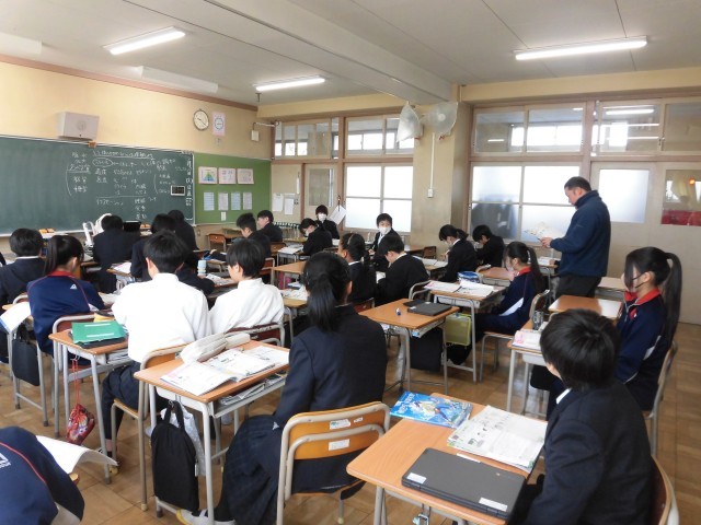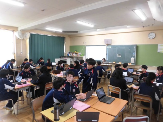 昨日の朝会で、校長先生から「三寒四温(さんかんしおん)」の話がありました。寒い日が3日続いた後に、4日ほど温かい日が続くことが春先まで起こるということでしたが、まさに今その時期に入ったと感じています。寒暖差が大きいのは体調に心配なので、どうか穏やかな三寒四温となることを願います。本日1時間目の授業の様子です。1段目の1組は国語、2段目の2組は理科です。どちらのクラスもテスト勉強に取り組んでいました。黙々と集中する生徒や、先生や友達に相談しながら勉強に取り組む生徒の姿が見られました。3段目の3組は家庭科です。3月に授業で各自の探究した課題を発表するので、その準備をしていました。製作中のプレゼンの内容を確認したり、教室前面に表示された予定を見て、計画の段取りを話し合ったりする様子が見られました。4段目の4組は体育です。テストに向けて、保健分野で学習したことを確認しているところでした。先生が問題を全体に出しながら、答えを生徒の一人一人に聞いています。明日から第3回テストが始まります。これまでの成果を出せるように、どうかがんばってほしいと思います。