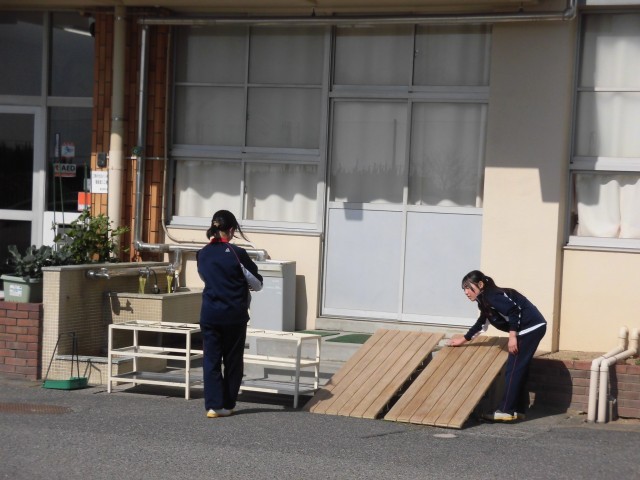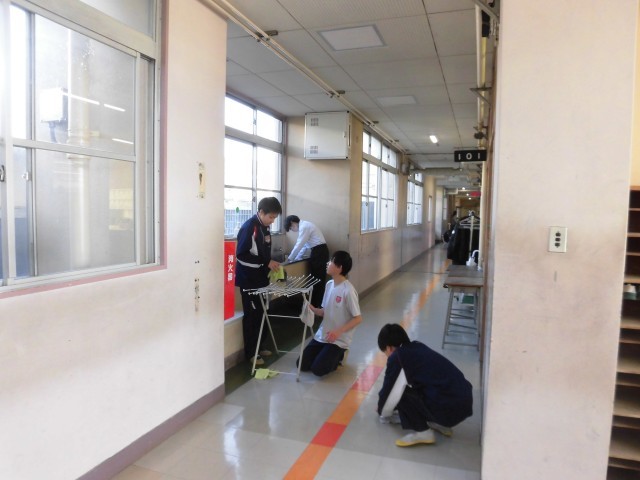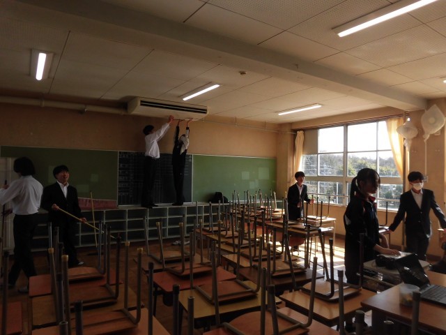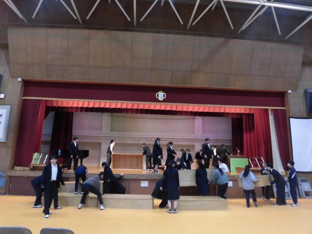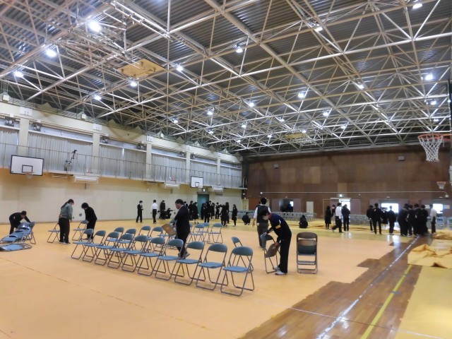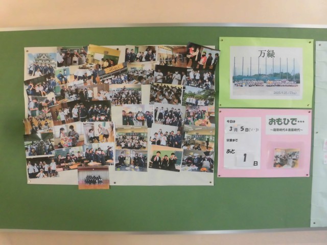 卒業式へのカウントダウンはついにあと「1日」となりました。いよいよ明日が卒業の日です。そのために、3年生が下校した後、1・2年生が明日の卒業式に向けて会場準備と校舎内外の清掃をしてくれました。会場をはじめとする校内の様々な場所をきれいに整えてくれたり、教室を華やかにしてくれたりすることを、時間をかけて本当にがんばってくれました。1・2年生の皆さん、ありがとうございます。