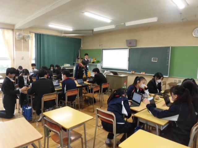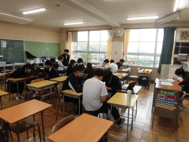 予報では、今日の雨で少し気温が下がるようです。ここ数日が暖かかったので、急な冷え込みで体調を崩さないよう気をつけたいと思います。本日3時間目の学級活動の様子です。ついに修学旅行の話が本格化してきました。この時間は、特別教室にも学年主任や副担の先生が入り、班別行動で見学する場所や昼食の検討で各教室が大いに盛り上がっていました。当日がより充実するように、ぜひしっかりと計画を練ってほしいと思います。