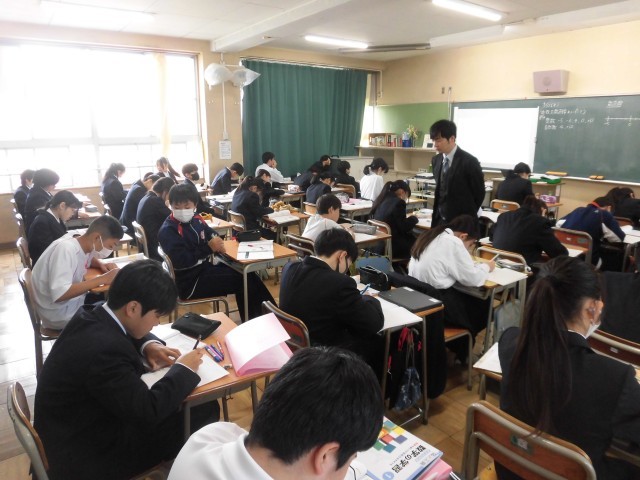 今朝は地域で野生動物に関するお知らせもあり、登校が心配される場面がありましたが、保護者の皆様、地域の皆様の見守りで、無事に生徒達は登校することができました。ありがとうございます。本日1時間目の授業の様子です。上段の1組は社会です。授業で用いるタブレットPCの操作について、課題を解きながら確かめています。全てクリアすると先生からの認定を受けることができるので、認定を受けようと生徒達がクラスの各所で懸命に取り組む姿が見られました。2段目の2組は数学です。正負の数について、数直線を用いて確かめています。書き方にも気をつけながら、生徒達が懸命にノートに数直線を書き込む姿が見られました。下段の3組は英語です。ALTの先生が入った授業となっています。円形に並べた椅子の中で、誕生日などを英語で答えながら仲間を探す課題に取り組んでいました。生徒達は、各自が順番に話す英語を、真剣に聞き取ろうとする様子が見られました。