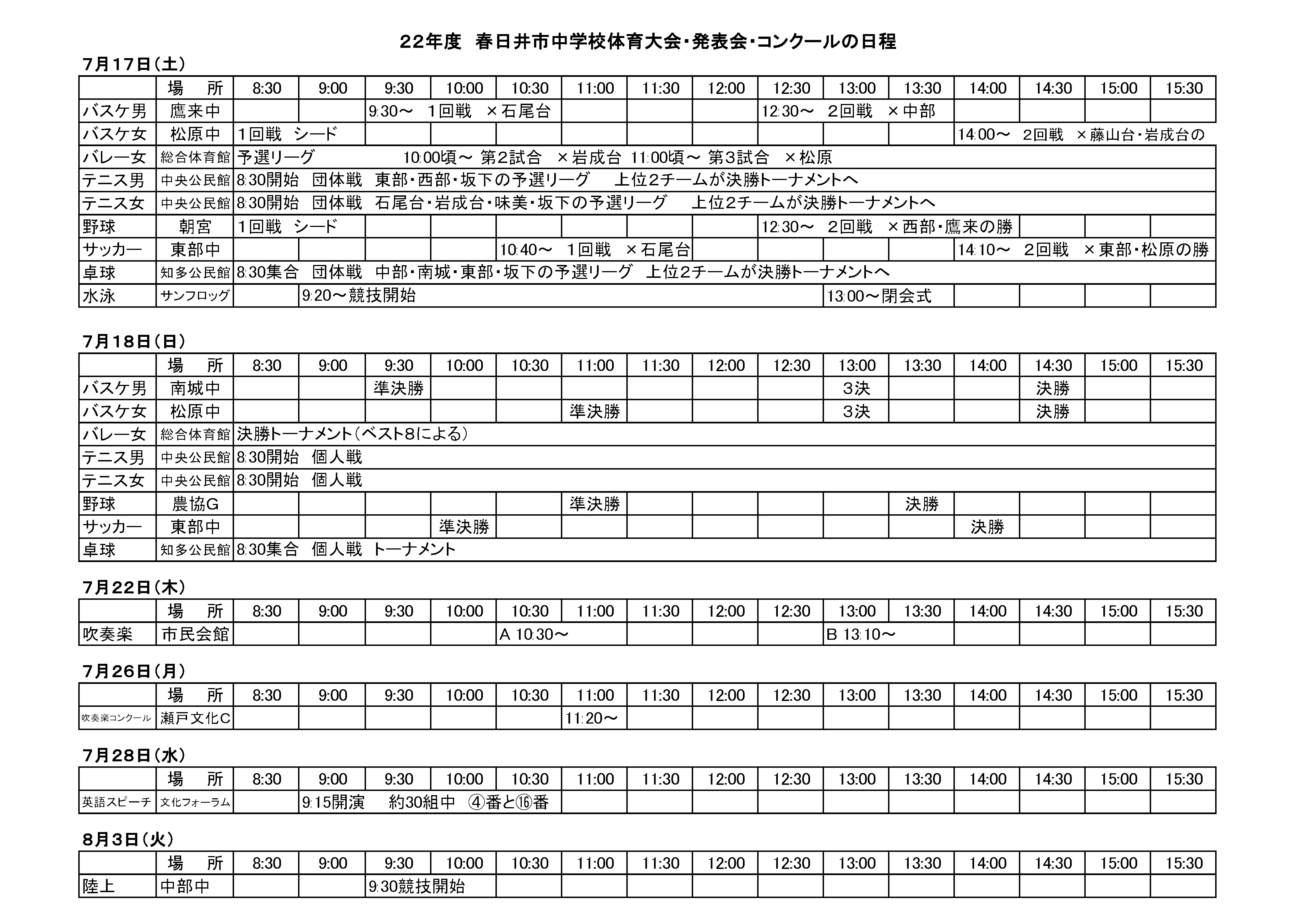 市大会・発表会・コンクールの日程です!