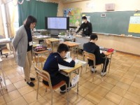 今日はスッキリと晴れた1日となりました。週末にかけて10月中旬並みの暖かさとなるようで、季節外れのぽかぽか陽気となるようです。この時期、少しでも暖かいと嬉しいですね。本日、3時間目の授業の様子です。上段は2組の数学の授業で、扇形の角度を求める問題を生徒が説明していました。中段は3組の理科の授業で、星座の見え方について勉強していました。下段は4組の英語の授業で、グループで協力しながら課題に取り組んでいました。