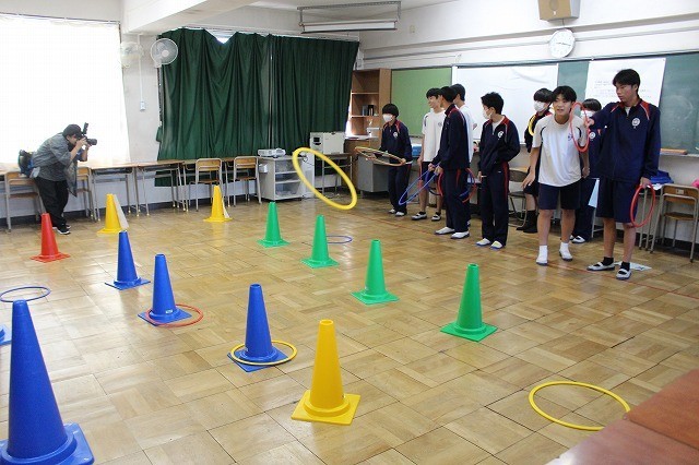 生徒たちは、体育館、武道場、特別教室など校舎全体を巡りながら、「ペットボトル立て」「ストラックアウト」「輪投げ」といった様々アトラクションを楽しんでいます。