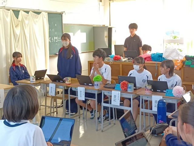 生徒会や各クラス議員・委員会の委員長さんが集まり、後期の議会を行いました。議会の流れや議長さんを含めたそれぞれの役割を確認しました。来週、認証式を行ってから本格的に始まります。みんな真剣に向かっていました。それぞれ、みんなから選ばれて議員や役員になっています。自信をもって、生徒自身で学校を良いものにしていってください。