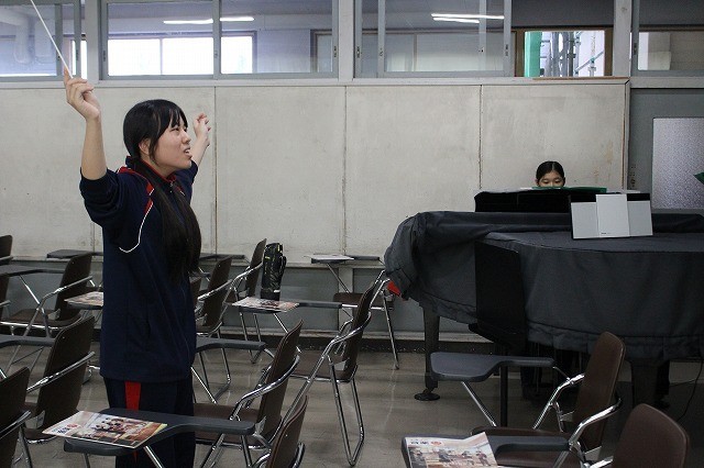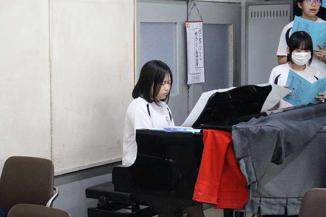 3年生は、ピアノ伴奏や指揮者も加わり、真剣な雰囲気で練習を行いました。