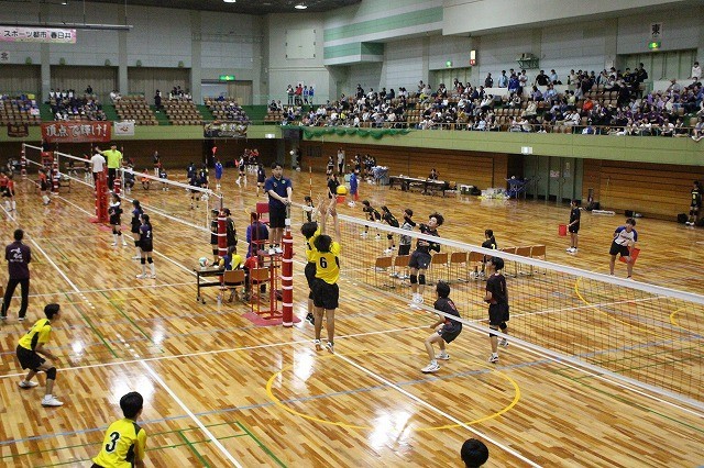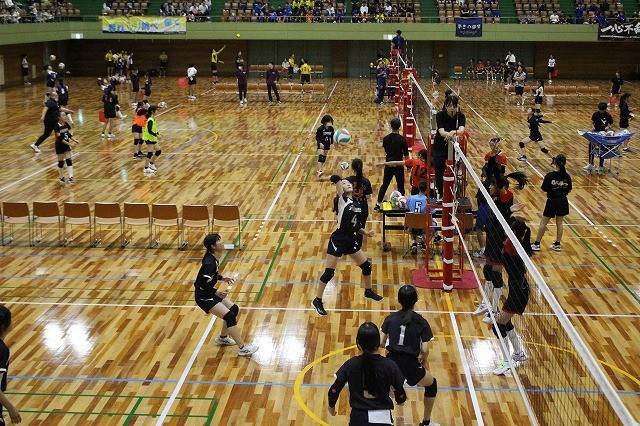 種目別練習会のバレーボール競技の前半の様子です。本校からは男子・女子の両方のチームが大会に参加しました。