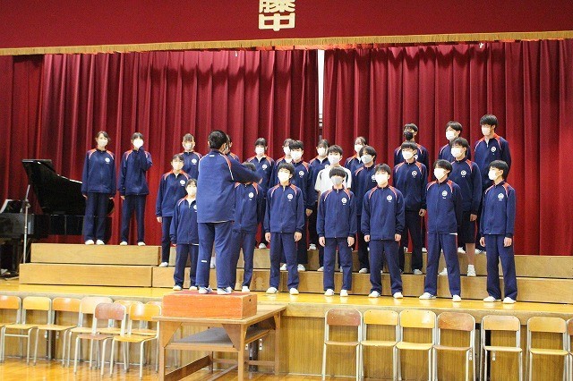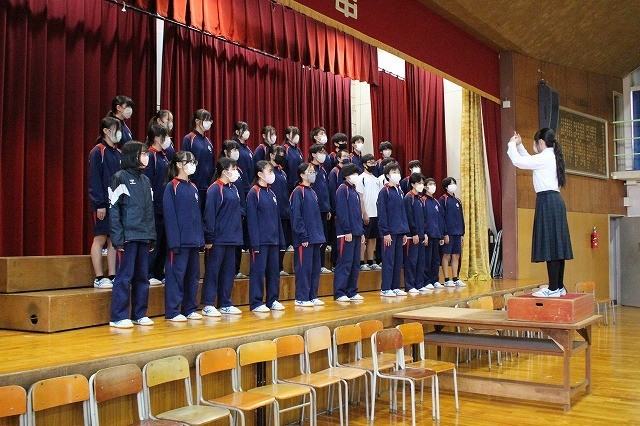 本番さながらの会場で、歌声の調整と全体の動きの確認を実施。3年生たちは少し緊張している様子も見られましたが、静かな集中力と本番への強い決意が感じられました。