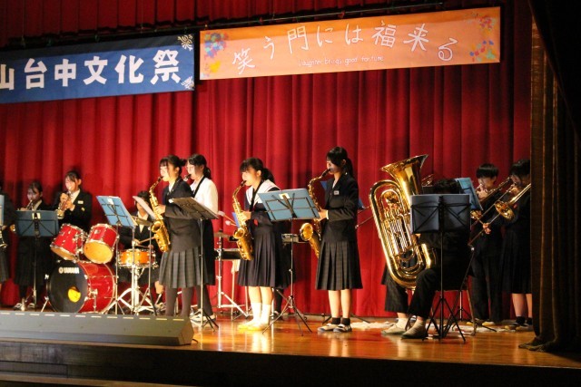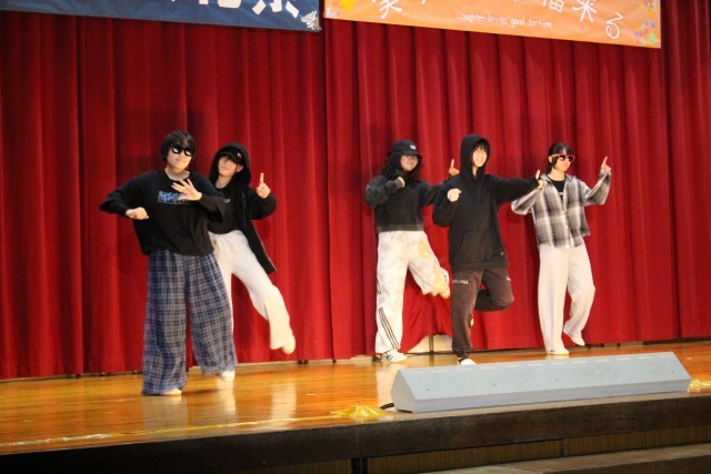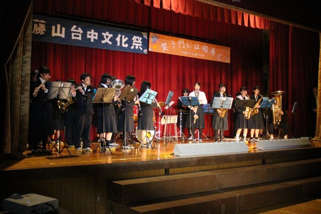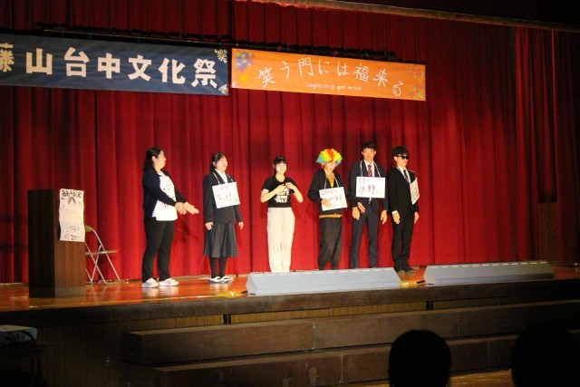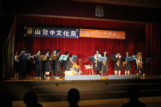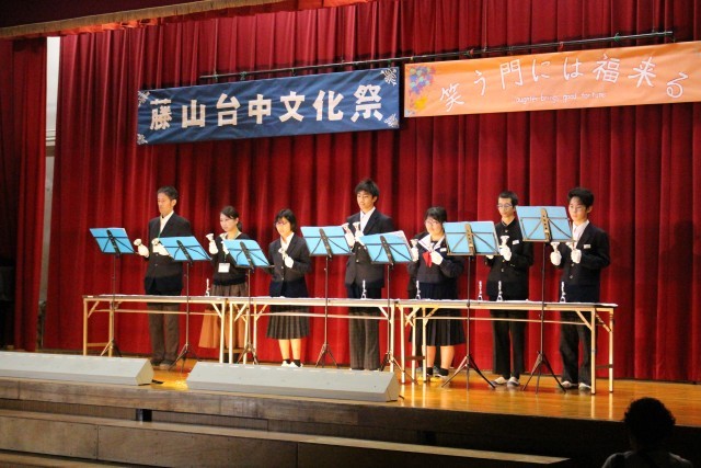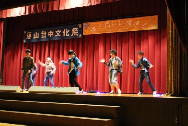 午後からは、生徒たちによる藤中オンステージが行われました。前半は5・6組ハンドベル、KAMMWI、CROWN、2.52.5オタサー、Uniqueens、英語スピーチ、吹奏楽部演奏がそれぞれ行われ、ダンスや演奏等会場は大盛り上がりでした。