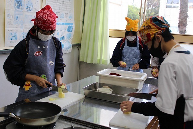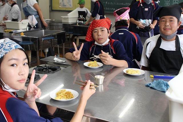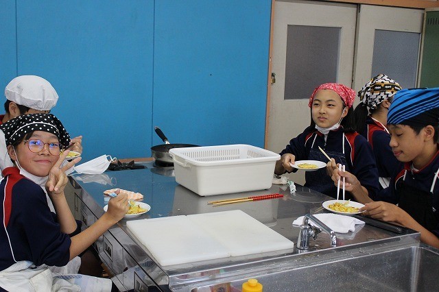 生徒たちは、協力しながら調理に夢中になっていました。どの班からも楽しそうな声が上がり、充実した調理実習となりました。