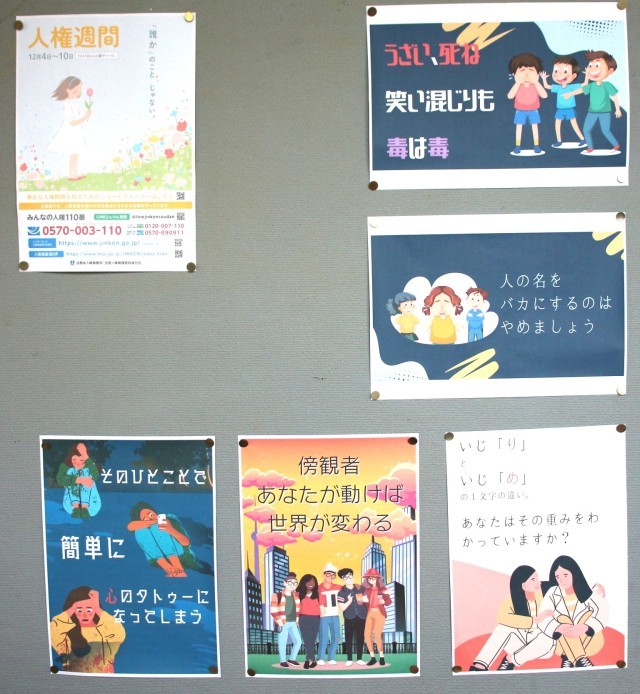 12月の人権週間で、各学年人権について学びました。2年生は人権動画の「『誰か』のこと じゃない。」いじめ編 や、「わたしたちが伝えたい,大切なこと ~手伝えることはありますか~」などを見て、いじめ防止標語をみんなで作りました。いい作品が学年に掲示されていました。一人一人の人権、みんなで守りたいですね!