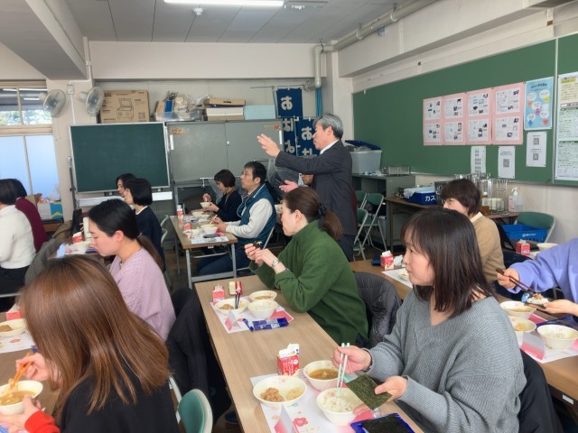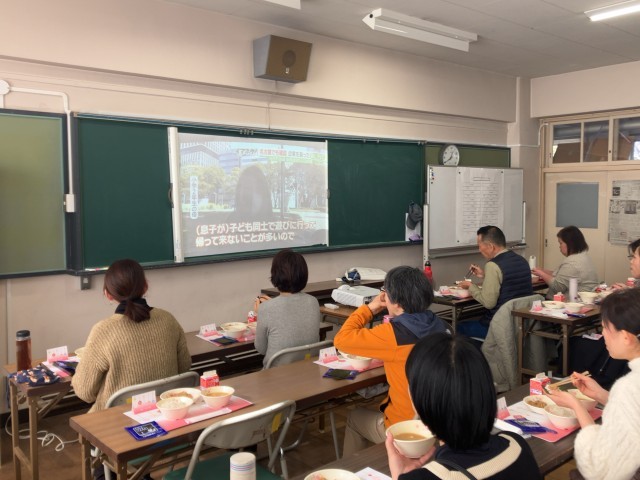 議題や来年度の活動の方向性を協議した後、給食試食会や「ふじっこタイム」の参観をしていただきました。今日はちょうど、生徒にも人気の手巻きごはんとお味噌汁だったので良かったです!生徒のコミュニケーションの様子も参観いただき、普段の取り組みを知っていただく良い機会となりました。ご参加いただいた役員・委員・地域のみなさま、ありがとうございました。