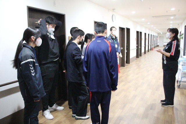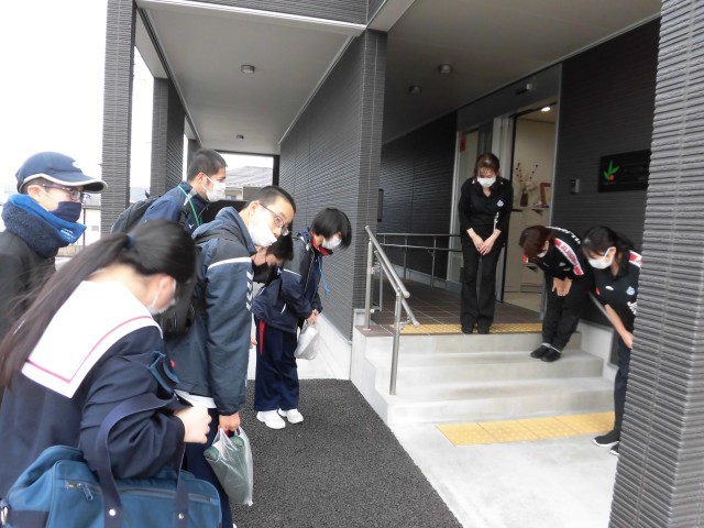 5・6組のみんなと、ノキシタプレイスの「ナーシングホーム 寿々」さんへ高齢者との交流体験学習に行ってきました。ナーシングホームの仕組みや施設を紹介していただいたり、タオルたたみなど少しお手伝いをさせていただいたりしました。