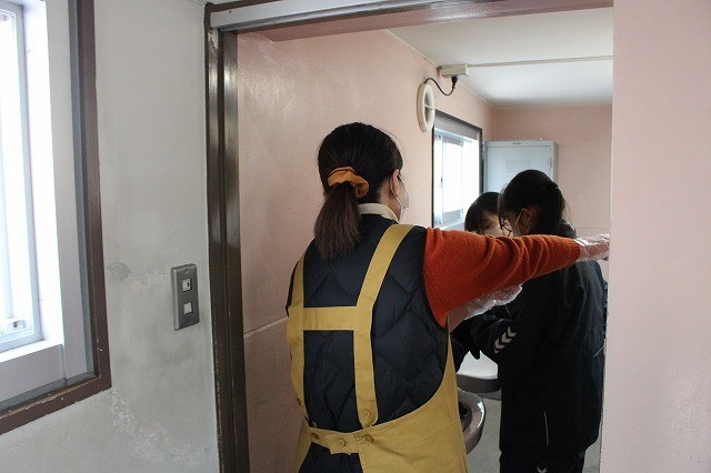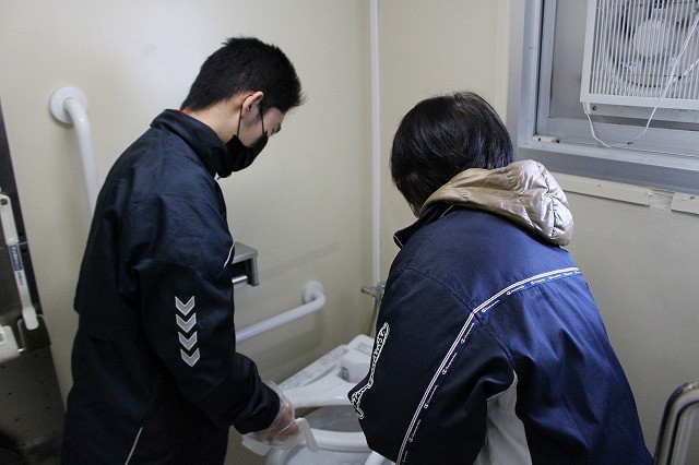 本日、地域ボランティアの方が来校され、生徒と一緒にトイレ清掃を行ってくださいました。