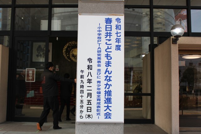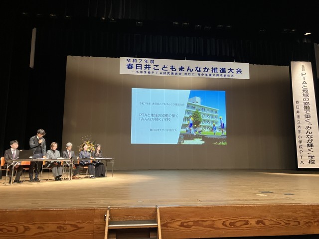 令和7年度の「春日井こどもまんなか推進大会」が市民会館にて開催されました。広く春日井市内の学校や園を中心に保護者の方が参集し、健全育成作品の表彰式・大手小学校PTAの研究発表・講演会が行われました。