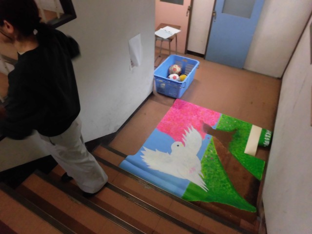 学校では、今日検査がない生徒で階段アートを完成させていました。みんなで力を合わせて在校生に、そして4月に来る新入生に希望を与えるような素敵なデザインです。しばらく学校を華やかに彩ってくれそうです。3年生の皆さん、ありがとうございました。