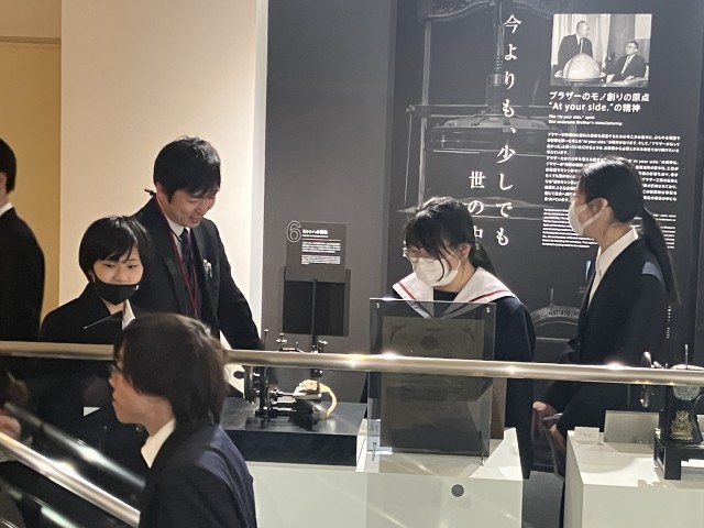 1年生校外学習の午後は、ブラザーミュージアムに行きました。愛知を代表するブラザー工業の歴史と技術をさまざま体験することができました。ミシン開発から興した会社が、プリンターやカラオケなどいろいろな事業に「モノ創り」の魂で挑戦していることが分かりました。クイズラリーをしたり、足踏みミシン体験をすることもできて楽しく学びました。あいさつや班行動などもしっかりでき、2年生での飛躍を感じさせる頑張りが見られました。