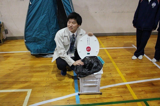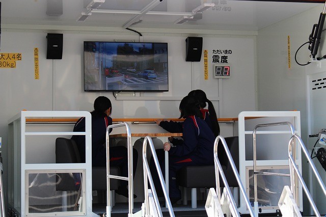 防災専門官の講話をはじめ、キャッピー号での震度7体験や、段ボールベッド・トイレの設営、HUGにも挑戦。