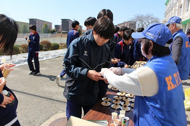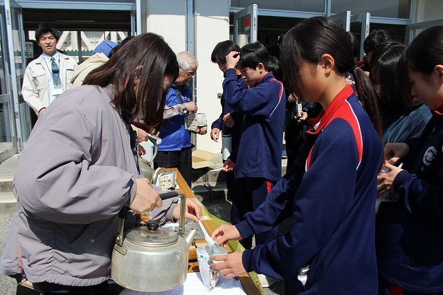 お昼には、快晴の空の下で給食の代わりに非常食を味わいました。体験を通して、災害時に自分たちができることを真剣に考える一日となりました。