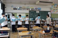 6月4日(木)、1年生の体育授業の様子です。男子はハードル、女子はマット運動を練習していました。