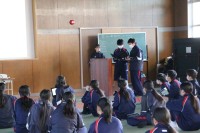 本日、武道場にて1年生にむけた生き方講話会を開催しました。地域で働いている電気工事士さんと看護師さんを講師にお招きし、それぞれの職業についてお話していただきました。お二人とも、その職に対する誇りと自信を持って働いていること、人の役に立つことのすばらしについて語っていただきました。どの生徒も講師さんのお話を聞く中で、働くことへの興味が広がり、来年2年生で実施する職場体験にむけて意識が高まりました。