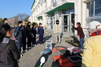 芸術鑑賞では、「ジャンブルカルテット」の演奏を聴きました。ピアノ、サクソフォン、バイオリン、打楽器の4人グループの演奏でした。校歌をアレンジしたり、即興演奏をしたりと楽しませてくれました。