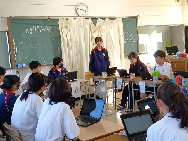 生徒会や各クラス議員・委員会の委員長さんが集まり、後期の議会を行いました。議会の...