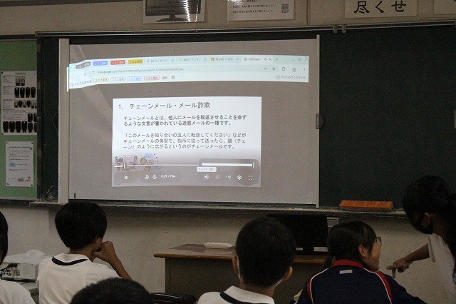 本日、昼活動で情報活用学習を行いました。チェーンメールやメール詐欺の危険について...