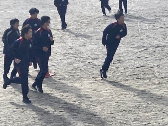 寒空のもと、サッカー部が練習していました。冬の試合に向けて、気持ちが高めて行ける...