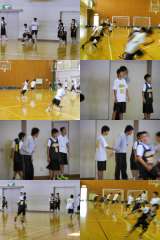 体育館ではバスケ部男子ががんばっています