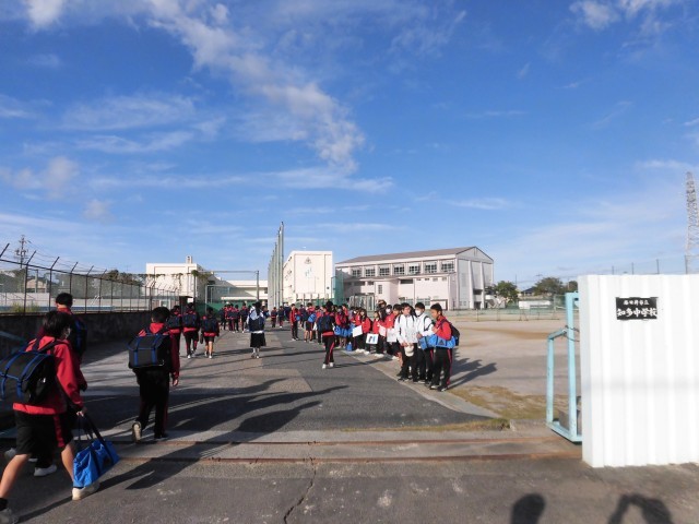 写真は2年1組の生徒のみなさんが登校する生徒のみなさんとあいさつを交わしている様子です。