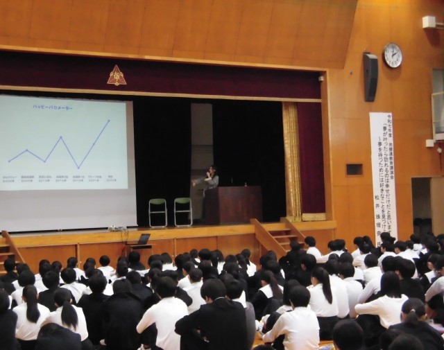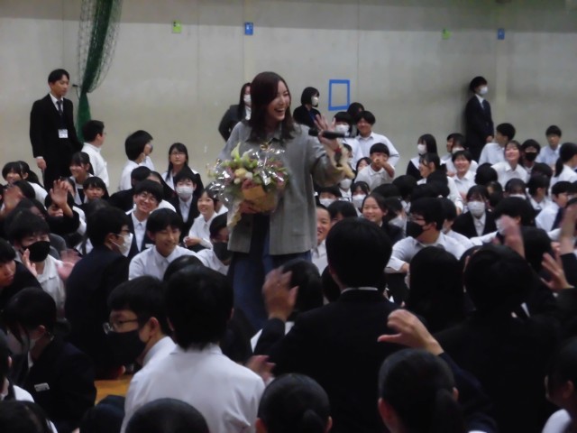 松井様のお話から、自分の夢についてあらためて考えるきっかけをいただきました。また、生徒と一緒に校歌を歌ったり、生徒の質問に丁寧にこたえたりしていただくなど、とても充実した時間となりました。