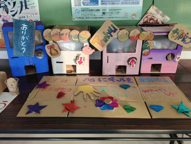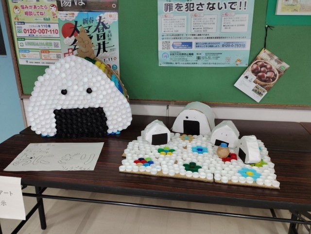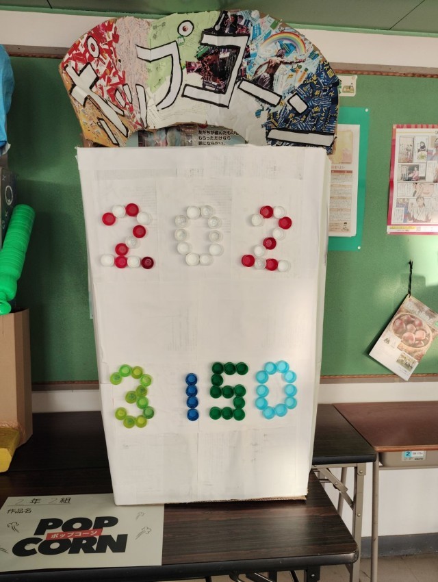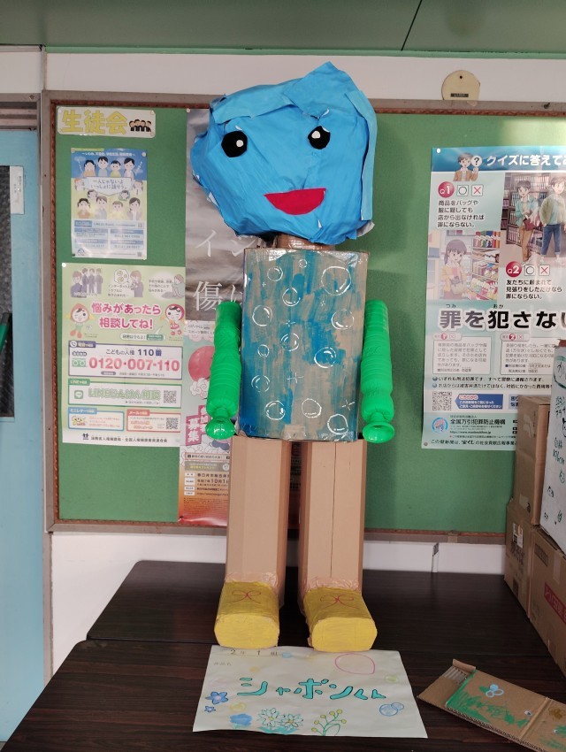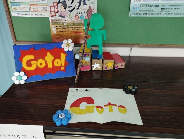 文化祭の創作活動で作ったリサイクルアート(2年生)です。