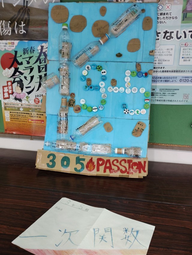 文化祭の創作活動で作ったリサイクルアート(3年生)です。
