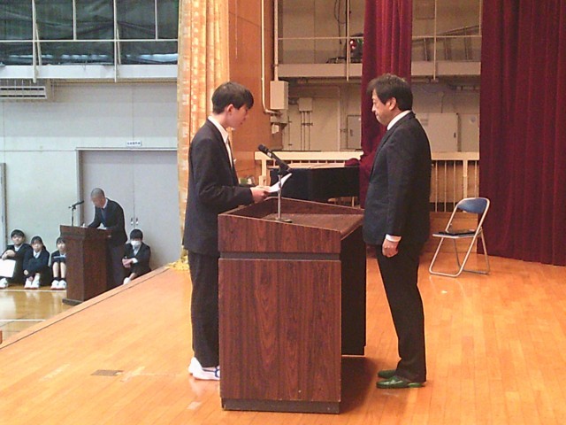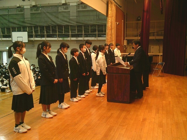 1年生生徒代表誓いの言葉では、「中学校生になってこれまでの振り返り」「3学期に向けて」に話がありました。